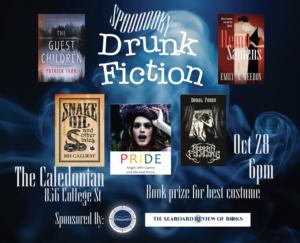 Tonight I’ll be reading from my horror short story, “Snake Oil” at Drunk Fiction, organized by Emily A. Weedon, a Halloween special held at the Caledonian pub, Tuesday, October 28th at 6 pm.